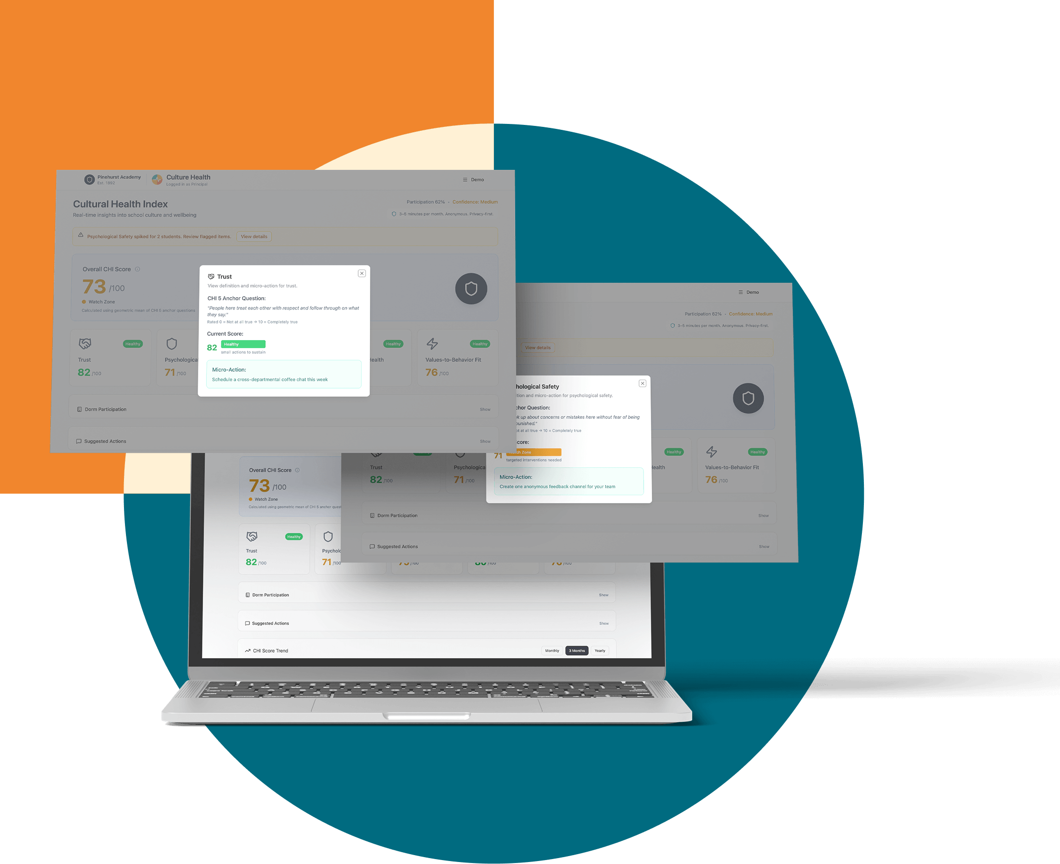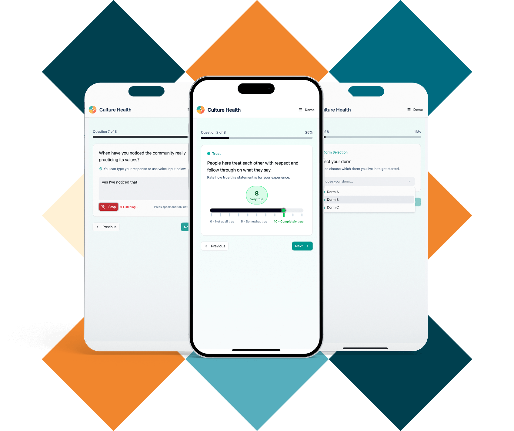 Mountain Dev partnered with Chris to rapidly design a high-fidelity prototype through a Foundation Sprint. In just weeks, we built a clickable prototype that looked, felt, and functioned like a real product. Every screen was crafted to highlight Culture Health's core value: delivering real-time, anonymous cultural insights and actionable leadership guidance.